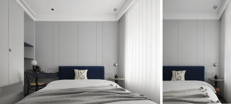 對(duì)于老人來說***重要的就是睡眠,因此,老人房中的隔音一定要做好,這樣老人才可以睡好,其次,便是雙層窗簾的安裝,一層用于白天遮光,避免陽(yáng)光過于強(qiáng)烈,一層是晚上的隔光窗簾,保證室內(nèi)的睡眠環(huán)境,床頭柜***好做圓弧設(shè)計(jì),沒有菱角磕碰,床頭背景墻的線條燈,采用暖色燈帶,方便老人晚上起夜上廁所。