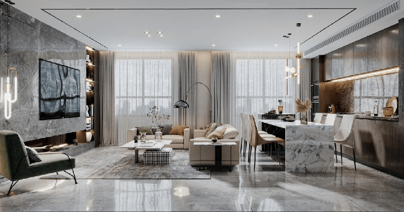 深色木材和灰色系搭配,氛圍沉穩(wěn)的同時(shí)也不乏溫暖感,嵌入式的電視機(jī)設(shè)計(jì),將電視機(jī)嵌入到電視背景墻內(nèi),電視背景墻做收納柜,線路可以隱藏在電視后面,大氣又整潔,很多家中的雜物都可以放在儲(chǔ)藏柜里,儲(chǔ)物功能直接翻倍,客廳整體的裝修風(fēng)格,給人很溫馨、很舒適,有種高雅大氣的時(shí)尚感,色調(diào)柔和低調(diào)有內(nèi)涵,在家具與色彩搭配上盡顯簡(jiǎn)約大方,浪漫優(yōu)雅,有韻味。