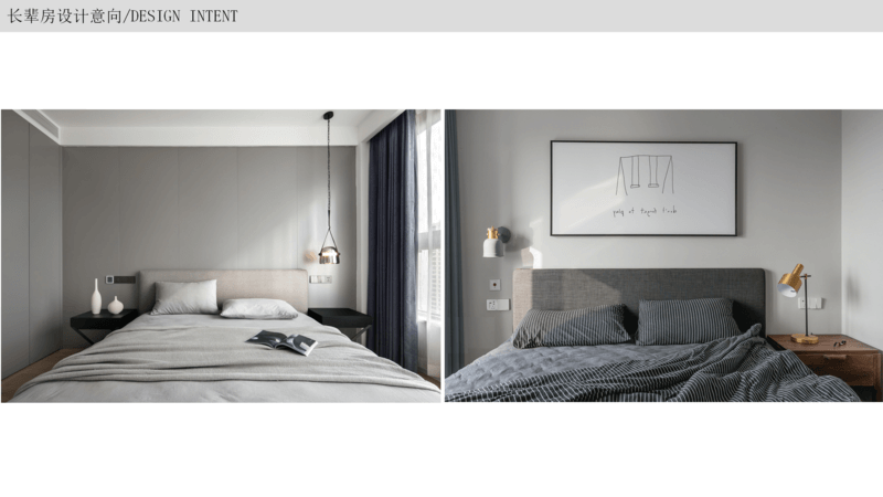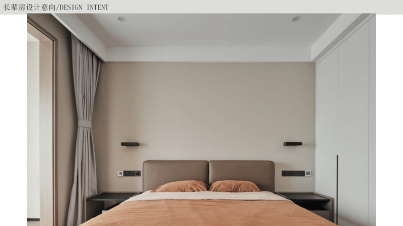 長(zhǎng)輩房 以簡(jiǎn)約大氣為主,隨著年紀(jì)的增長(zhǎng),生活需求是方便安全為主,以簡(jiǎn)單的裝飾畫(huà)為背景或者做簡(jiǎn)單軟包,整個(gè)空間顯得溫馨一些,放置床頭柜燈方便起夜,按需要增加收納即可。