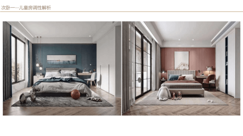 主臥做套房設(shè)計(jì),作為業(yè)主的私人活動空間,起居打扮在這里都能完成。另外三間臥室作為兒童房、長輩房和客房,房間以簡約為主,按照房間定性進(jìn)行規(guī)劃。